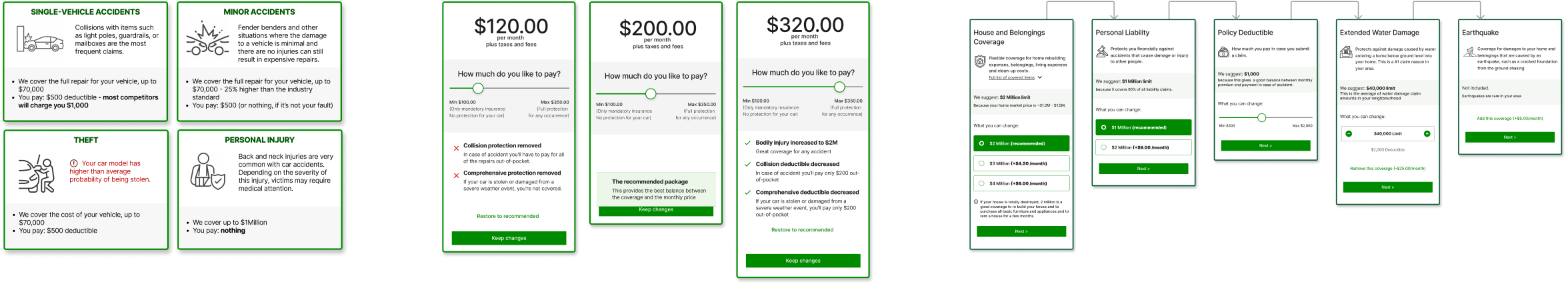 I built interactive prototypes for home, car, and bundle insurance and we ran 12 concept testing sessions.